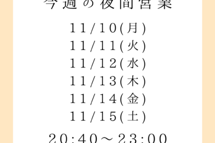 2025年11月10日 | 夜間営業