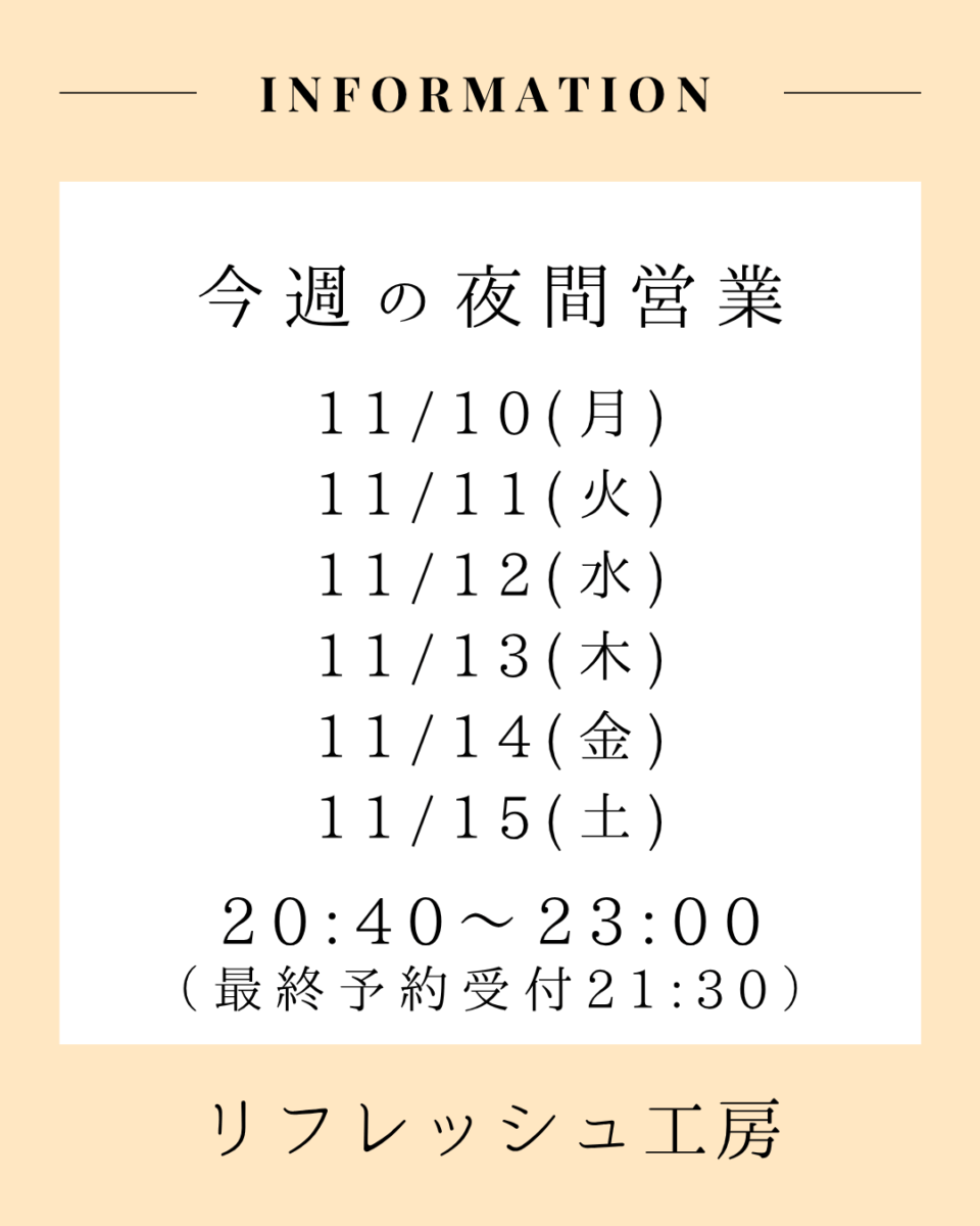 - ボディケア45分 → 22:00までにご来店で施術可能